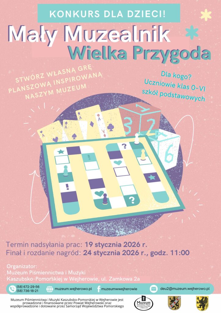 Muzeum Piśmiennictwa i Muzyki Kaszubsko-Pomorskiej w Wejherowie, z okazji swoich kolejnych urodzin, zaprasza dzieci do udziału w konkursie twórczym pt. „Mały Muzealnik – Wielka Przygoda”.